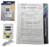 KALIBROVANÝ TEPLOMER TFA 30.1042 do mrazničky so zobrazením minimálnej a maximálnej dosiahnutej teploty. Súčasťou teplomera je špeciálny rámček. Pri záporných (mínusových) teplotách sa na displeji zobrazujú symboly hviezdičiek. Mrazničkový teplomer TFA má symbol optimálnej teploty, spĺňa normu EN 13485, skaliborovaný teplomer je vhodný na lekárske účely za účelom uchovávania vzoriek. Merací rozsah teplomeru TFA 30.1042 je od +50 do -30 °C / s presnosťou 0,1 °C. Teplomer je kalibrovaný v rozsahu od -5 do -29 °C.